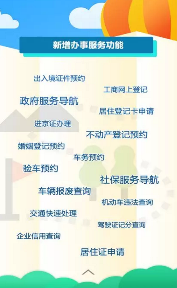 此外,結(jié)合公眾使用頻率較高的辦事功能,實現(xiàn)工商登記申請、車務(wù)手續(xù)預(yù)約、不動產(chǎn)登記預(yù)約、社會保險服務(wù)導(dǎo)航、政務(wù)服務(wù)導(dǎo)航等17項事項一鍵導(dǎo)入、一圖通辦。